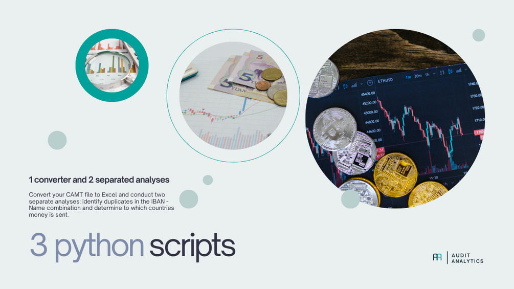 This toolkit helps auditors analyse CAMT bank files with ready-to-use Python scripts and examples. The lower launch price is temporary while I collect feedback from the first users.
